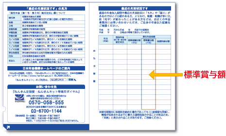 日本年金機構より送付される「ねんきん定期便」(ハガキ)にも、標準賞与額を千円単位で表示しています。標準報酬月額などとともに、最近の月別状況として確認することができます。(ハガキの裏面の一部を抜粋)